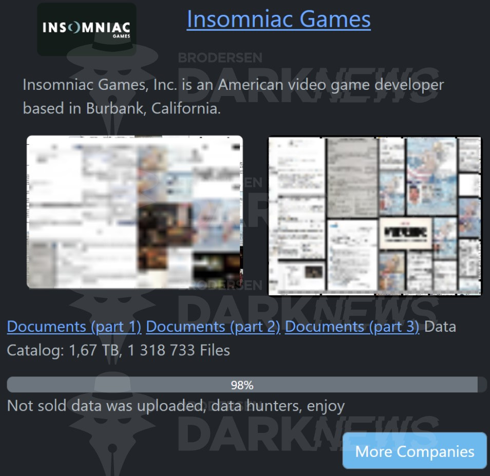 Ya a nivel global, tres casos resonaron fuerte. Por un lado, el leak de Insomniac Games, empresa que desarrolla videojuegos muy populares como Spider-Man para PlayStation: atacados por Rhysida Ransomware, no sólo publicaron información de los planes de la compañía para juegos no lanzados como Wolverine, sino también datos de más de 400 empleados.