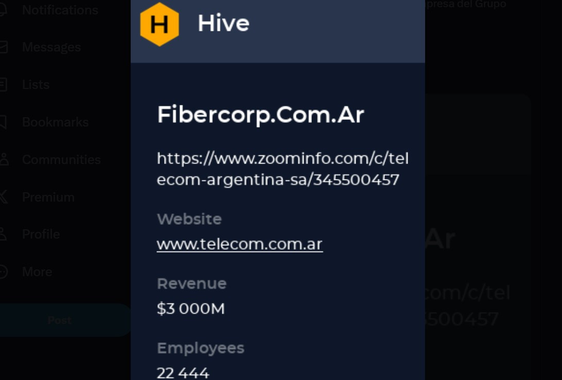 A fines de diciembre de 2022 comenzó a circular la versión de que que el grupo de ransomware Hive había afectado los sistemas de Fibercorp, la división de telecomunicaciones de Telecom B2B. En enero conseguí el onion con el acceso al chat de la negociación, donde se pudo ver que pedían cerca de 200 mil dólares en BTC.