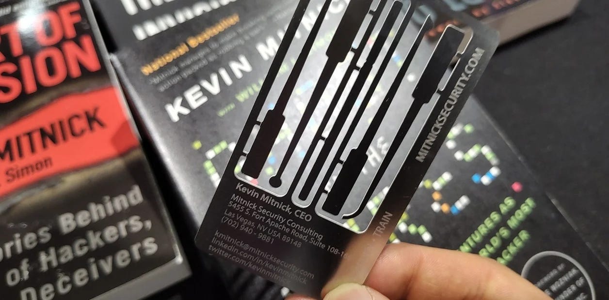 Para coronar y honrar al hacking, el Red Team organizó una serie de premios relacionados con Kevin Mitnick, el histórico hacker y considerado por muchos el referente más grande de la ingeniería social, que murió a mediados de año: no sólo sus libros sino también hasta su tarjeta personal, icónica, que consiguieron a través de su viuda.