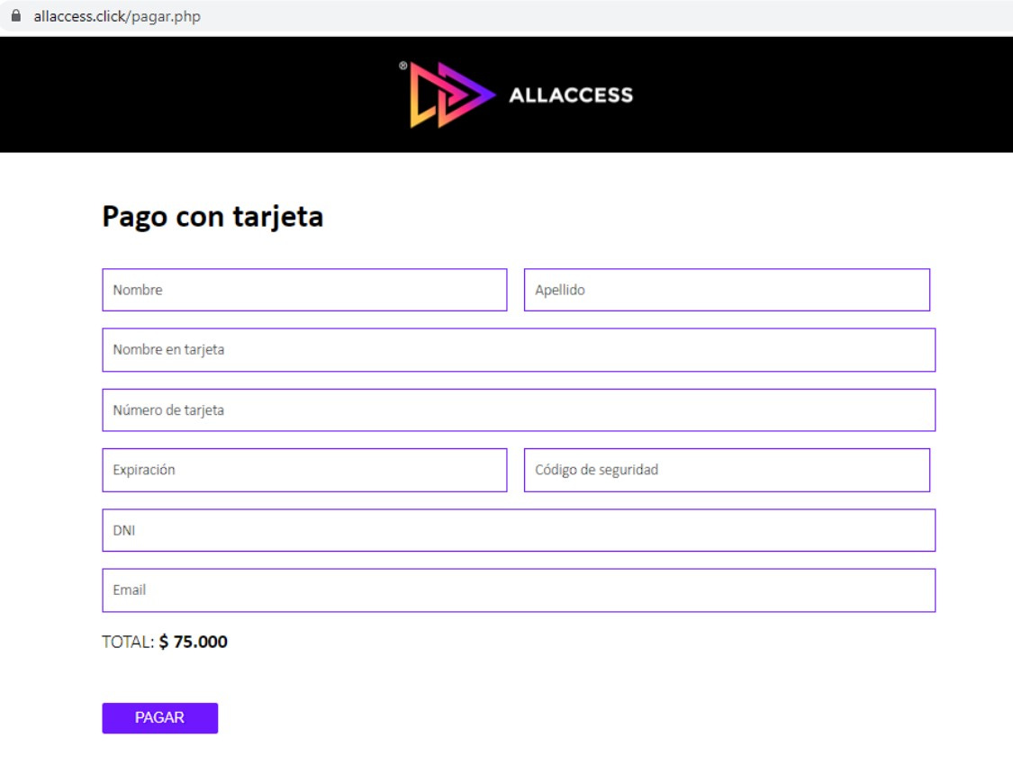“Se detectó una página falsa, idéntica a la oficial de venta de entradas, que simula el proceso de compra para el show de Taylor Swift con el fin de que la víctima ingrese los datos de su tarjeta de crédito o débito. Los ciberdelincuentes en este caso se están aprovechando del apuro por conseguir tickets para el concierto, lo que hace que a veces una persona no preste atención al sitio que ingresó y se olvide de validar que la misma sea la legítima”