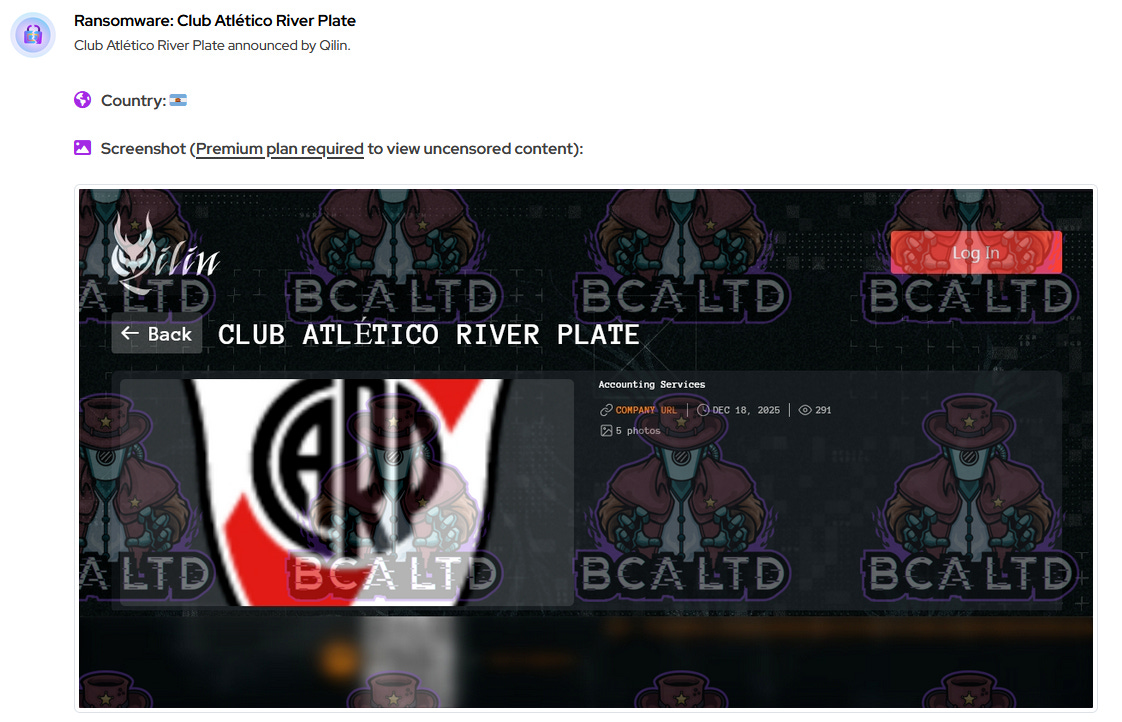River Plate apareció en una lista de víctimas de Qilin Ransomware y aseguran que tienen datos internos