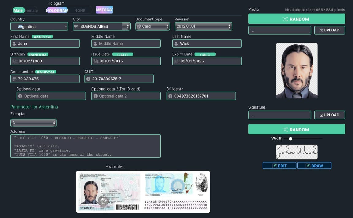 La investigación se puede leer en 404 Media, donde el periodista Joseph Cox creó una licencia de conducir de California con su identidad y luego usó el sistema para crear una identidad del personaje de ficción John Wick, radicado en distintas partes del mundo, incluso en Argentina, con su cédula de identidad. Escribió Cox, luego de contactar al CTO de la empresa: