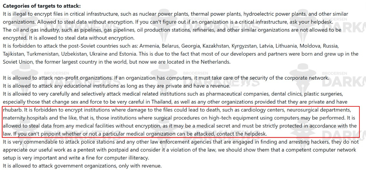 El escenario planteó el repudio desde diversos sectores no sólo de la opinión pública, sino de especialistas que siguen de cerca a las bandas de ransomware. El grupo, uno de los más prolíficos del momento, tiene reglas estrictas de no atacar infraestructura crítica de instituciones de salud.